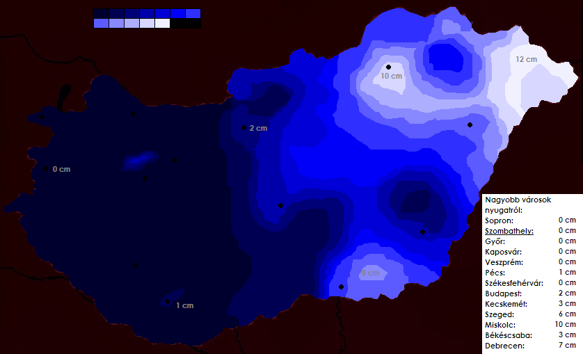 A folytatás hideg időt ígér. Az ország egy részén hétfőig 10-15cm hó is eshet főleg Zala, Veszprém, Pest megyék vonalában. A legkevesebb hóra Vas megye illetve a délkeleti megyékben élőknek kell számítani.